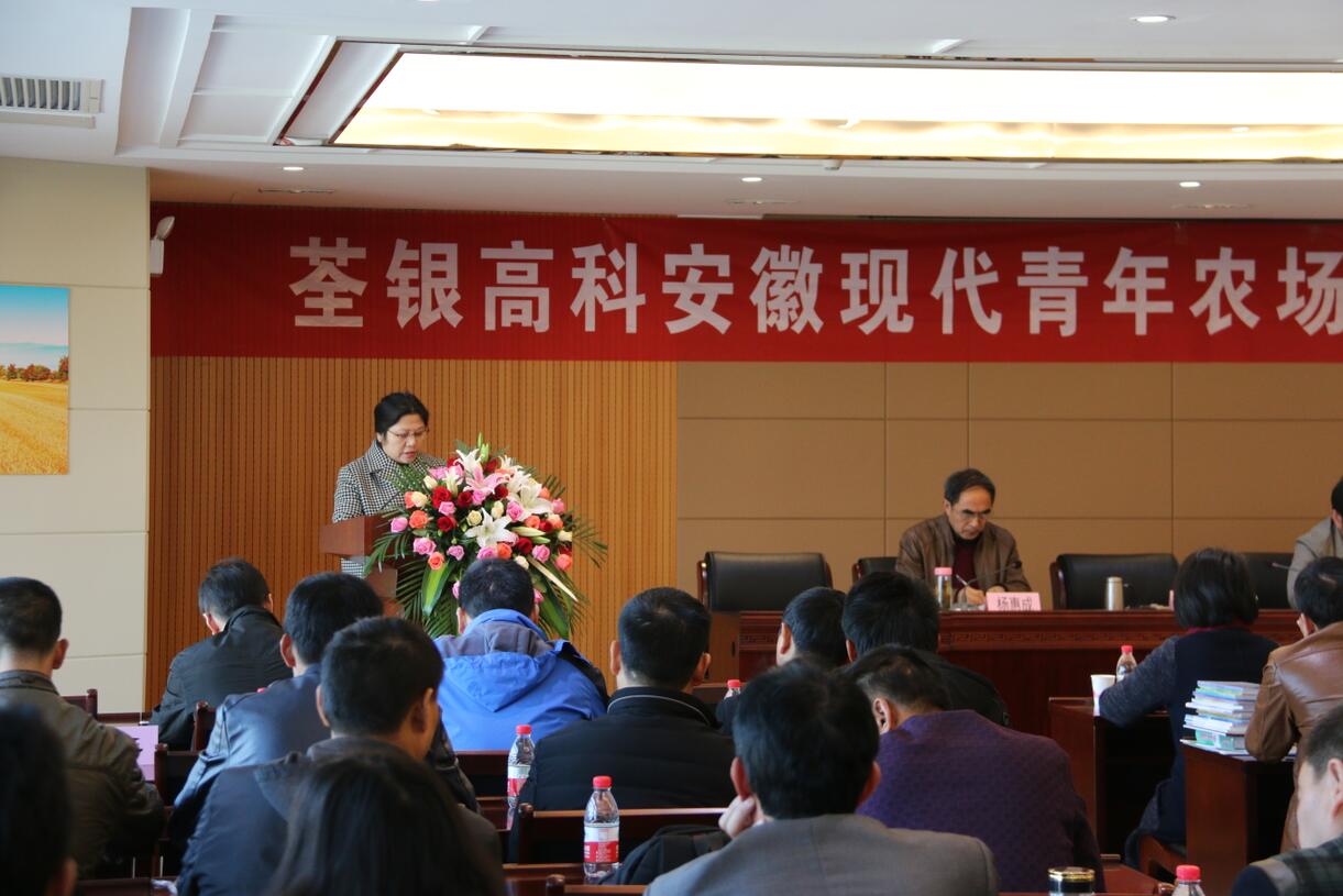 2017年3月27日上午,荃銀高科安徽現代青年農場主2016級培訓班開班儀式在肥舉行。合肥市農委主任夏倫平、共青團安徽省委農村工作部副部長陳永剛、安徽農業大學農學院黨委副書記鄢高翔、荃銀高科董事長張琴等領導出席開班儀式。來自合肥、滁州、馬鞍山、六安、銅陵、池州、蕪湖、宣城、黃山、安慶等地從事種植業的84名青年農場主參加了培訓。開班儀式由安徽省農委科教處副處長程世根主持。