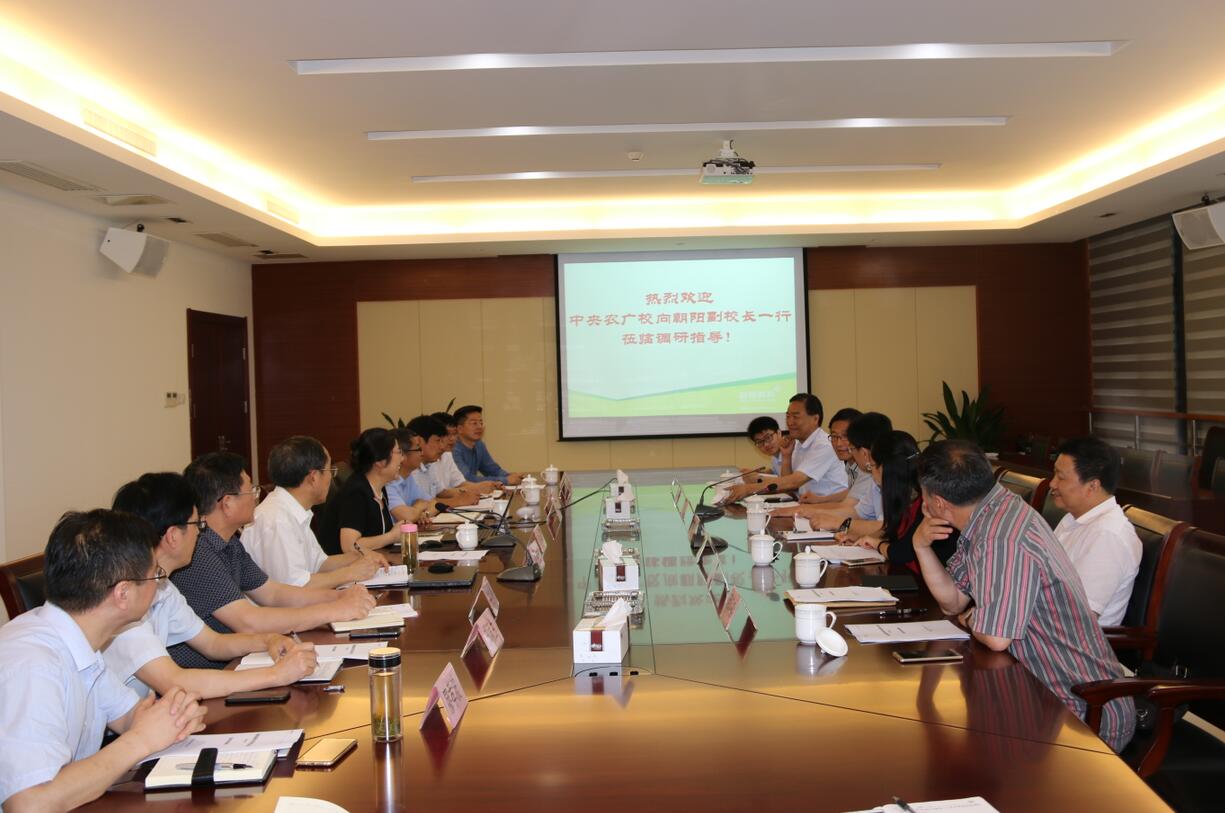2017年5月23日,中央農廣校常務副校長、農業部農民科技教育培訓中心主任向朝陽一行蒞臨荃銀高科調研現代青年農場主以及首屆農業職業經理人培訓情況,安徽省農委副巡視員梁仁枝、科教處處長張澤坤等陪同調研。荃銀高科董事長張琴,副總經理張從合、朱全貴,荃銀現代青年農場主培訓班總教務長楊惠成,以及安徽德林豬場管理股份有限公司董事長吳義師等參加調研座談會。