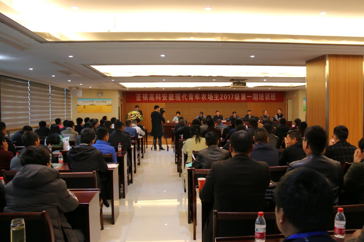 ? ? 2018年3月18日,農歷二月初二,荃銀高科安徽現代青年農場主2017級培訓班(糧油專業)開班典禮在公司六樓多功能廳舉行。安徽省農委科教處程世根副處長,合肥市農委夏倫平主任,安徽省農委科教處程曉冬主任、周偉主任,中化農業MAP安徽區域經理彭江南,金豐公社經理薛貽斌,安徽荃銀高科董事長兼總經理張琴,培訓班總教務長楊惠成,安徽張海銀種業基金會秘書長張彤等領導及相關人員參加開班典禮。來自全省各地150多名青年農場主參加了本次集中培訓。
